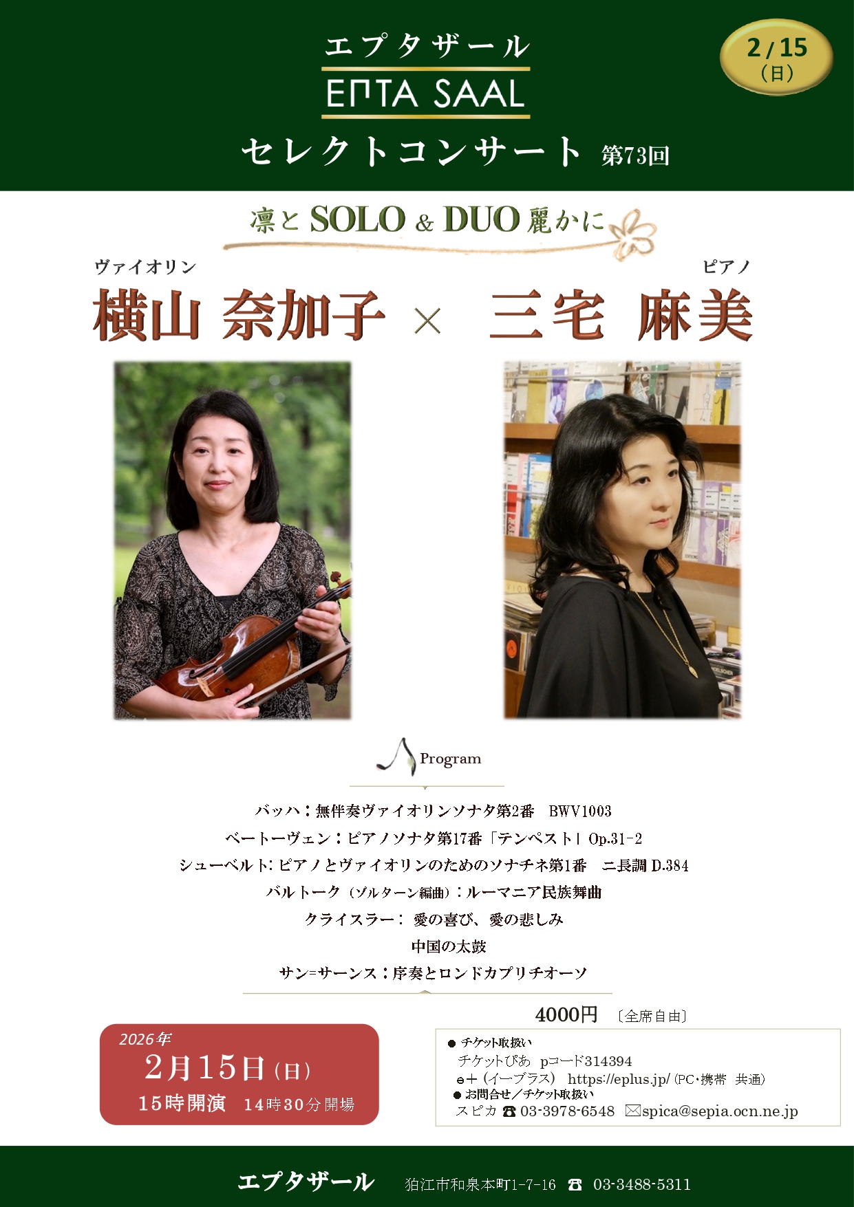 | 日程 | 2026年2月15日(日)14:30開場 15:00開演 | 場所 | エプタザール (小田急線 狛江駅北口より徒歩10分) |